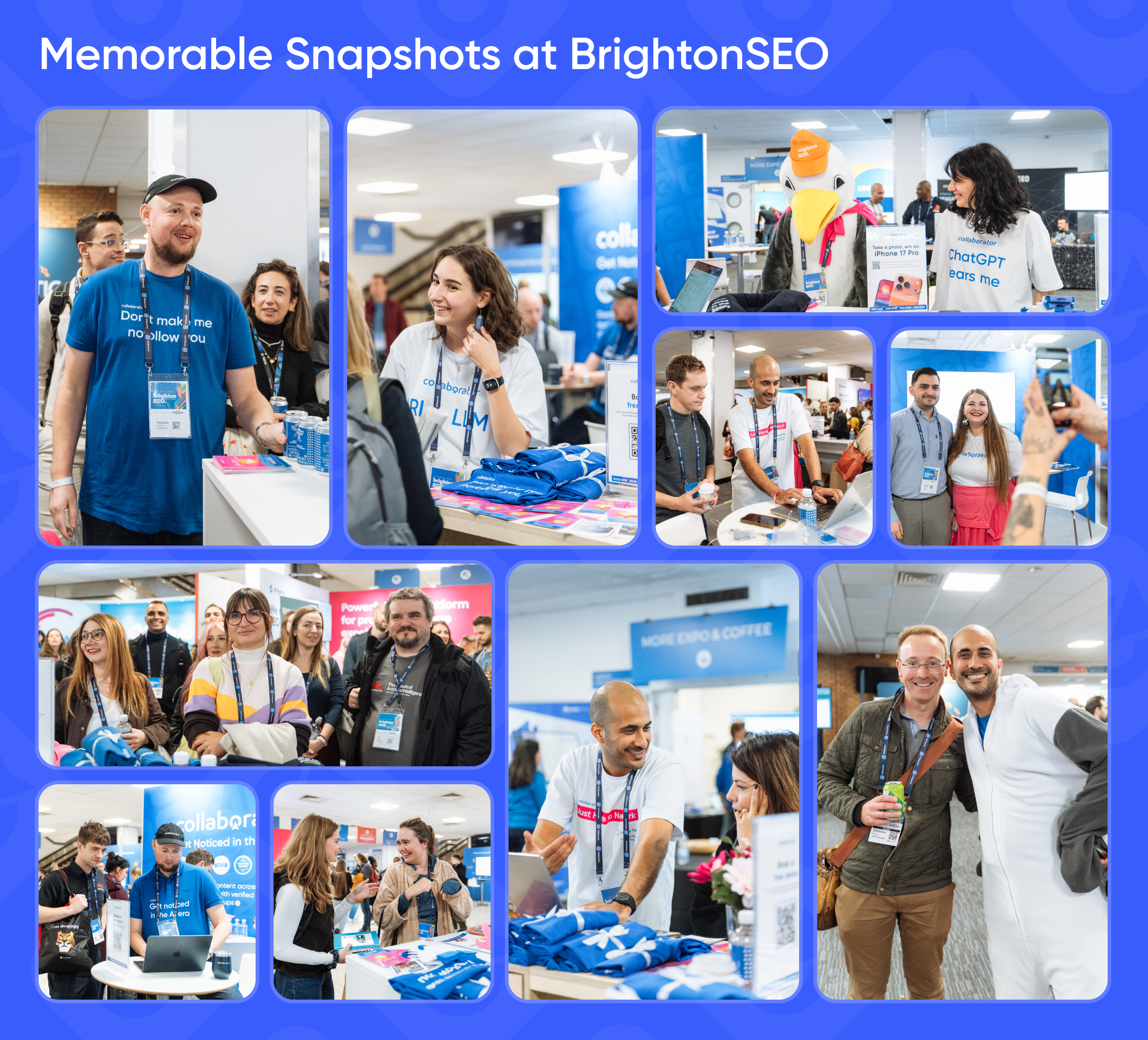A collage of Collaborator IPhone 17 Pro giveaway pictures at BrightonSEO 2025