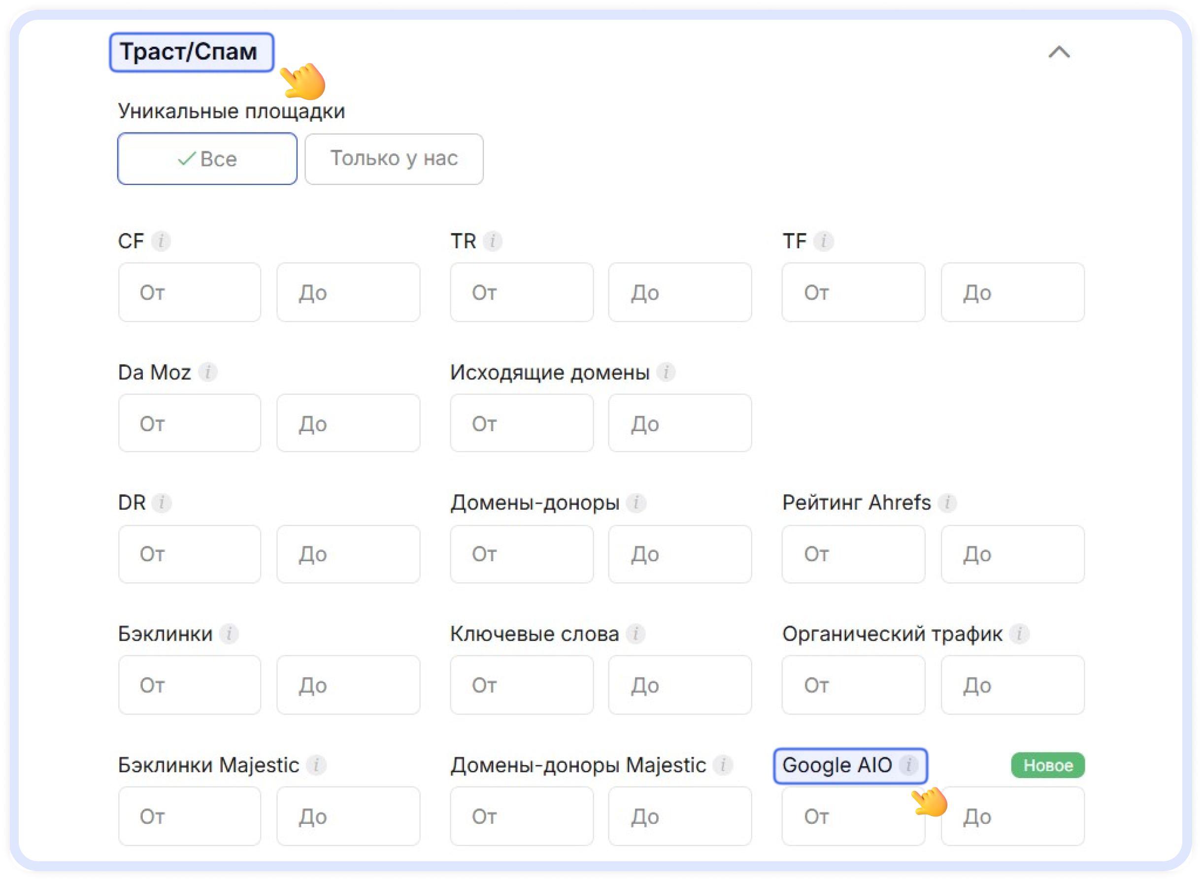 Для быстрого и удобного подбора площадок для размещения включите фильтрацию площадок по Google AI Overviews: